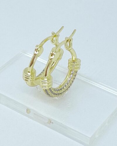 Urmărește-ne pe Facebook –BIJUTERII POEM Cercei eleganți, placați cu aur de 14K, cu dimensiunea de 1,8 cm, decorați cu micro cristale CZ strălucitoare. Designul deosebit le oferă un aspect sofisticat și feminin, ideal pentru orice ocazie. Hipoalergenici și rezistenți la uzura zilnică, acești cercei adaugă un plus de glamour și rafinament, fiind alegerea perfectă atât […]