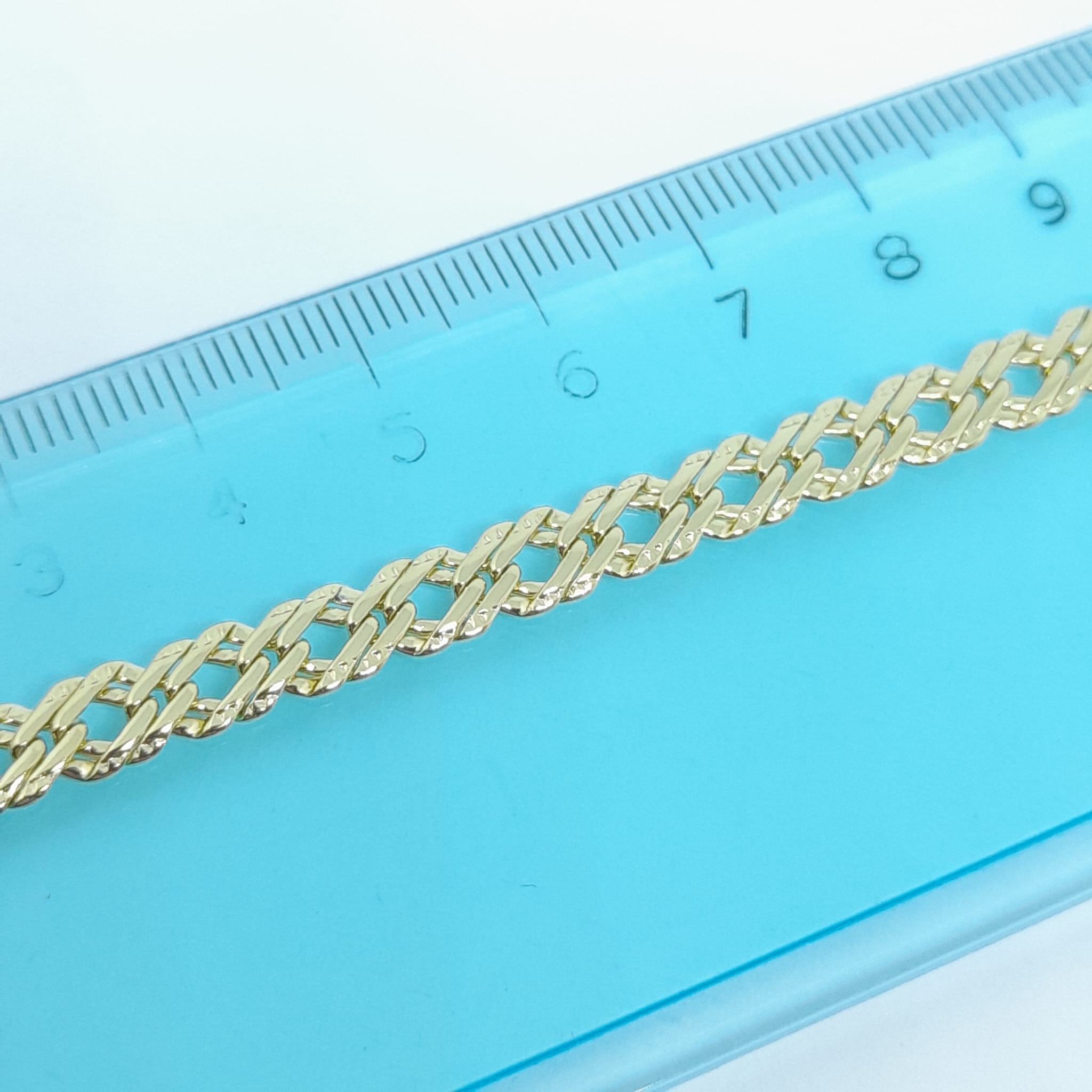 Brățară placată cu aur de 14K, cu dimensiuni de 19 cm lungime și 0,5 cm lățime, ideală pentru un stil elegant și rafinat. Realizată din material hipoalergenic, special conceput pentru a preveni alergiile și iritațiile pielii, brățara este rezistentă la umiditate, fiind potrivită pentru purtare zilnică.
