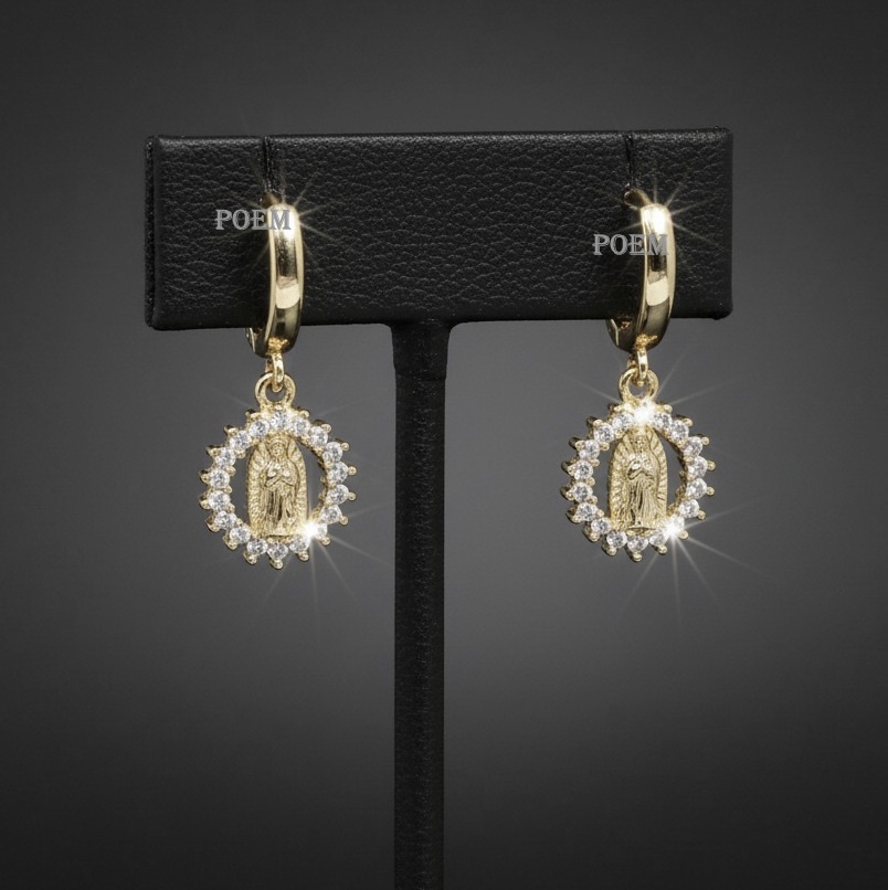 Descoperă cerceii eleganți cu Fecioara Maria, un simbol spiritual și protector reinterpretat într-un design rafinat și modern. Cu o lungime de 2.5 cm, acești cercei cu tortițe sunt decorați cu micro zirconii cubice (CZ), oferind strălucire delicată și un aspect premium.