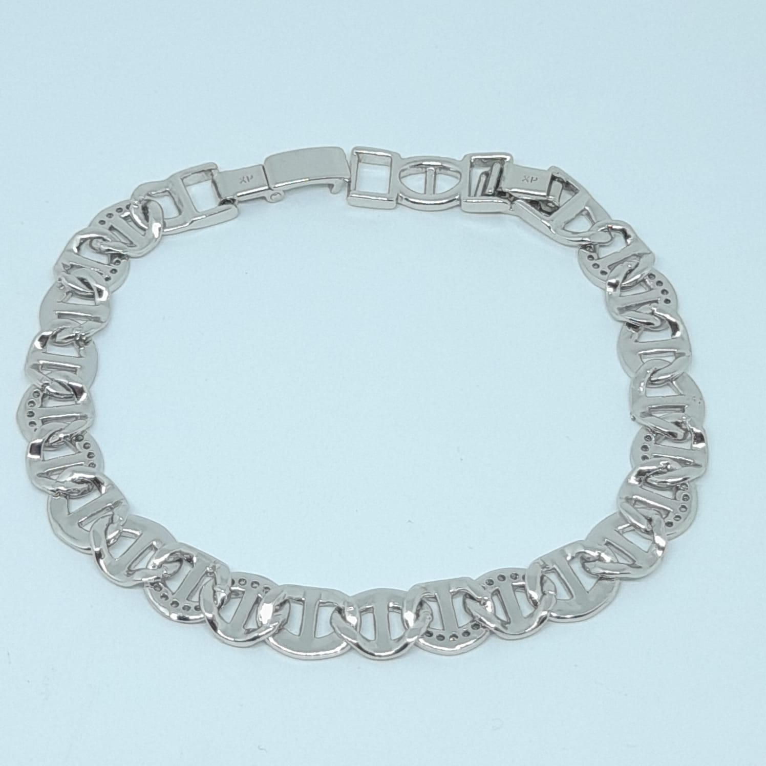 Brățară placată cu aur alb 18k, lungime reglabilă 18 cm- 20 cm*8 mm, insertii micro zirconii cubice.