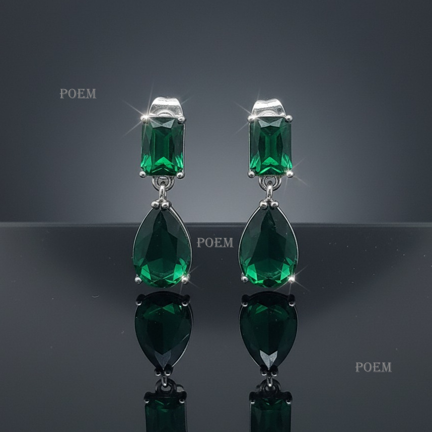 Încântă-ți ținuta cu acești cercei rafinați, placați cu aur alb 18K și împodobiți cu strălucitoare pietre cubic zirconia de tip smarald +5A.. Fiecare detaliu este lucrat cu atenție, oferind o notă de eleganță și sofisticare, perfectă pentru ocazii speciale sau evenimente în care vrei să strălucești.