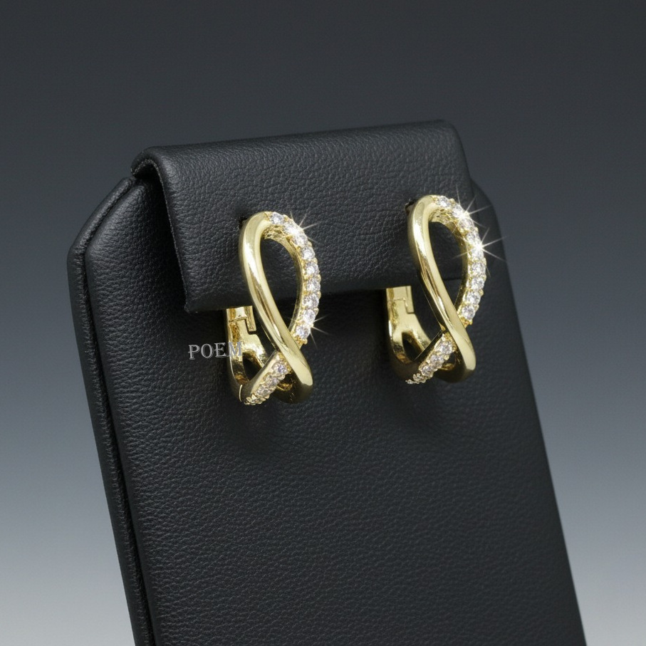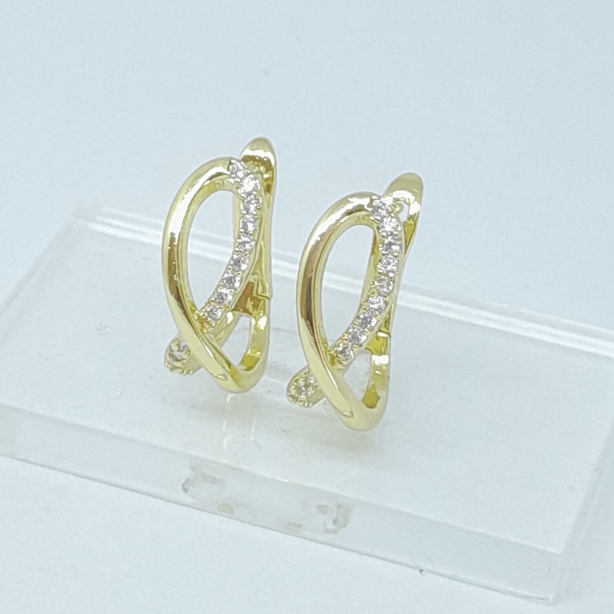 Cercei eleganți, placați cu aur de 14K, cu dimensiunea de 1,8 cm, decorați cu micro cristale CZ strălucitoare. Designul deosebit le oferă un aspect sofisticat și feminin, ideal pentru orice ocazie. Hipoalergenici și rezistenți la uzura zilnică, acești cercei adaugă un plus de glamour și rafinament, fiind alegerea perfectă atât pentru cadou, cât și pentru purtare zilnică.