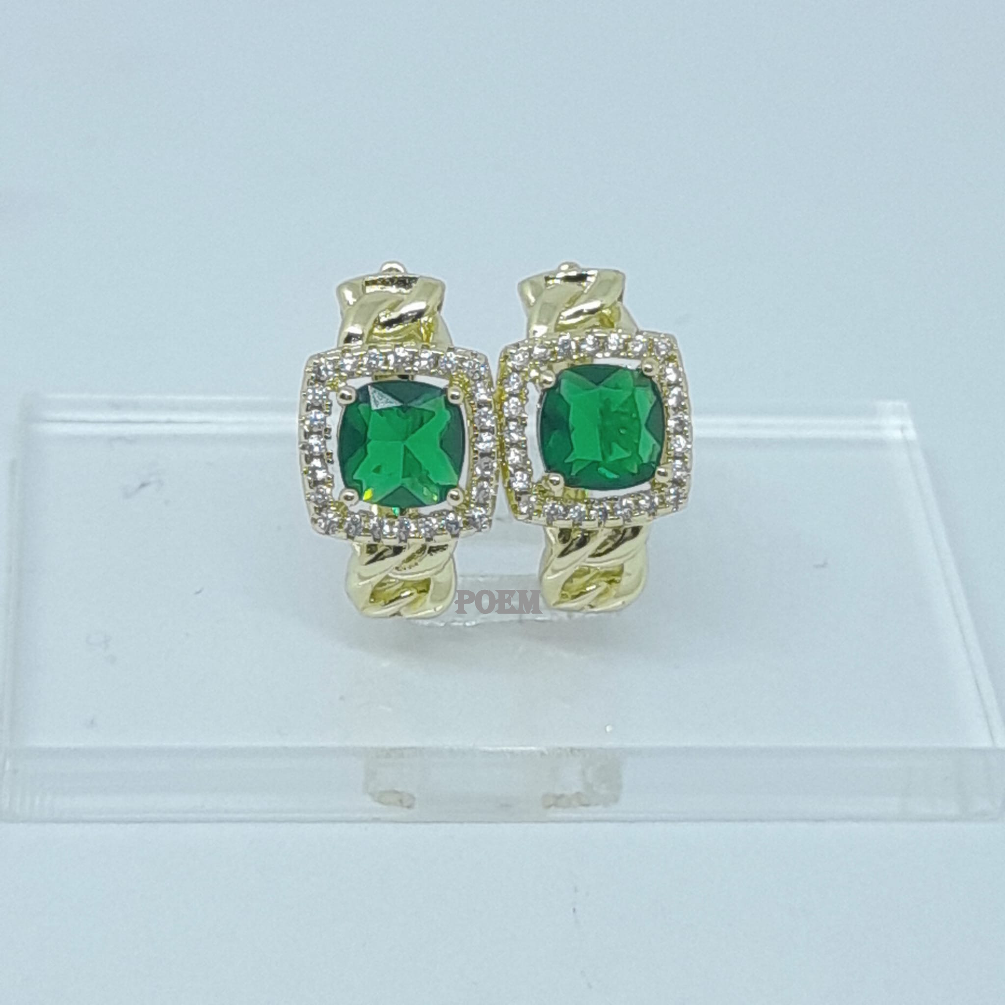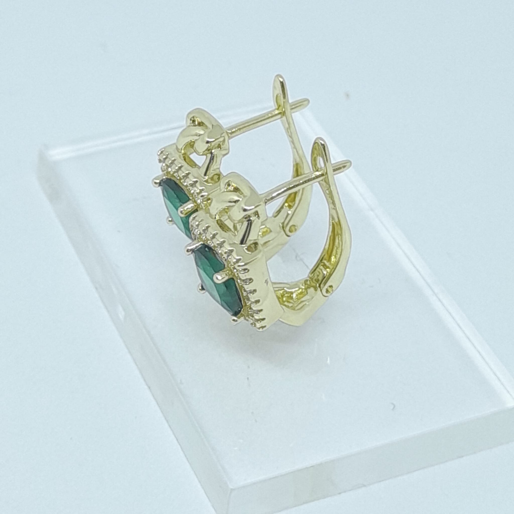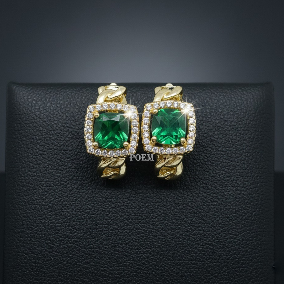 Cercei de lux placați cu aur 14K, cu CZ tip smarald