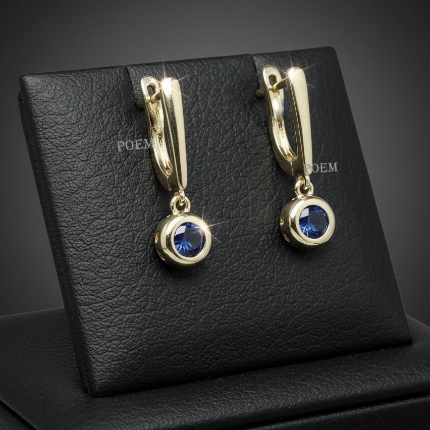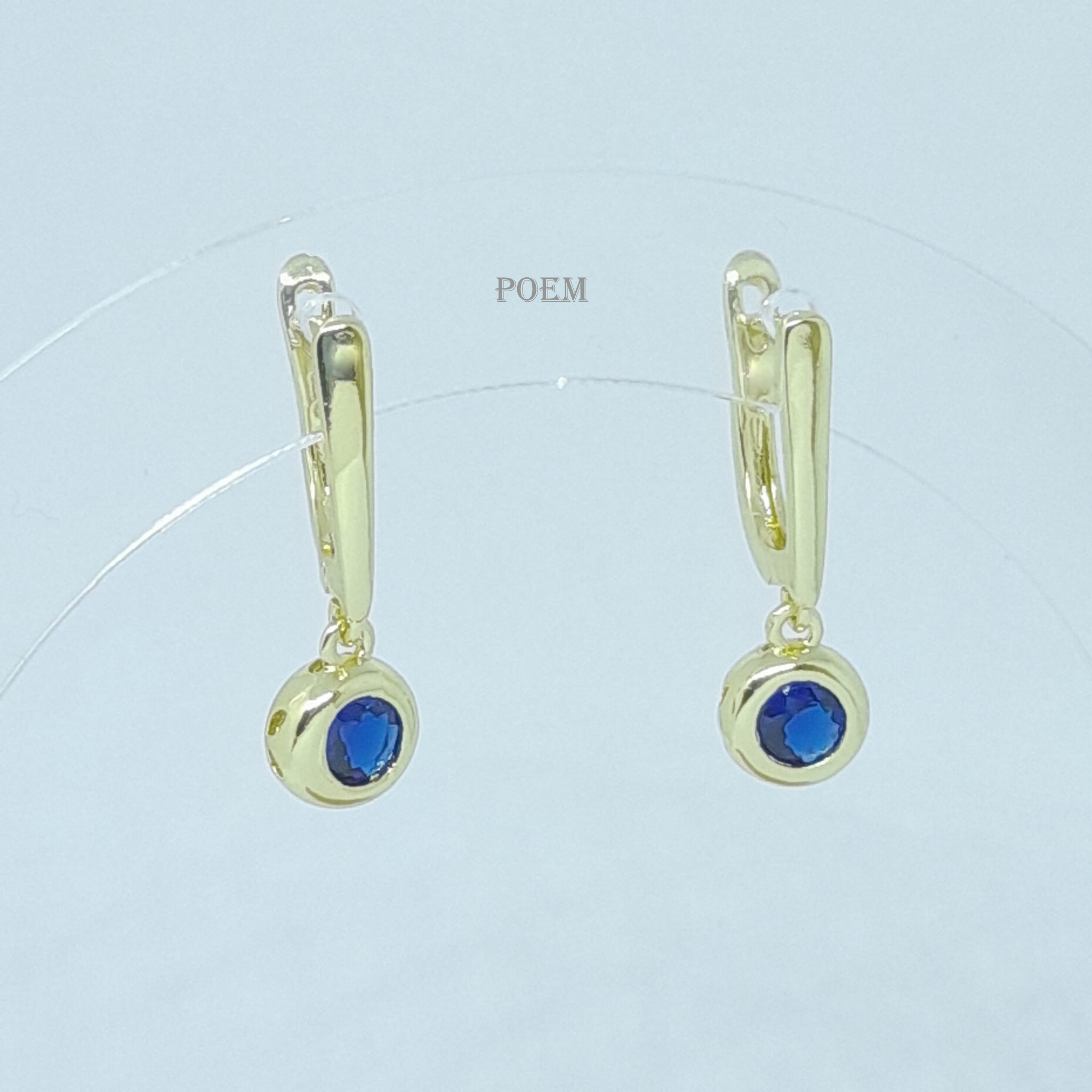 Cercei de lux placați cu aur 14K, cu CZ tip safir albastru