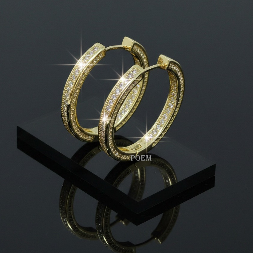 ✔ Cercei creole cu micro zirconii CZ pavé – strălucire intensă și uniformă