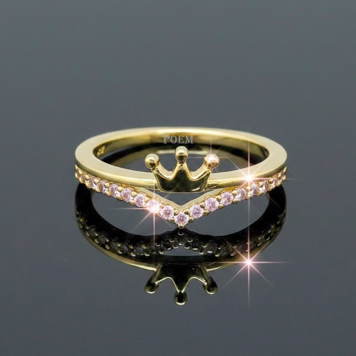 Un inel elegant și minimalist, inspirat de forma unei coroane, creat pentru a evidenția rafinamentul și stilul regal. Designul delicat în formă de coroană este accentuat de pietre din cubic zirconia +5A, atent șlefuite pentru a capta și reflecta lumina din orice unghi, oferind o strălucire asemănătoare diamantului.