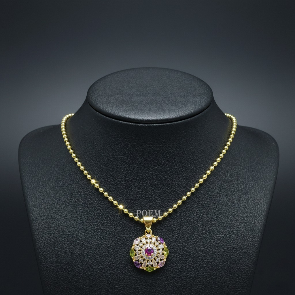 Alege un lanț elegant cu pandantiv CZ peridot, ametist și granat, creat pentru a evidenția frumusețea, stilul și personalitatea ta.
