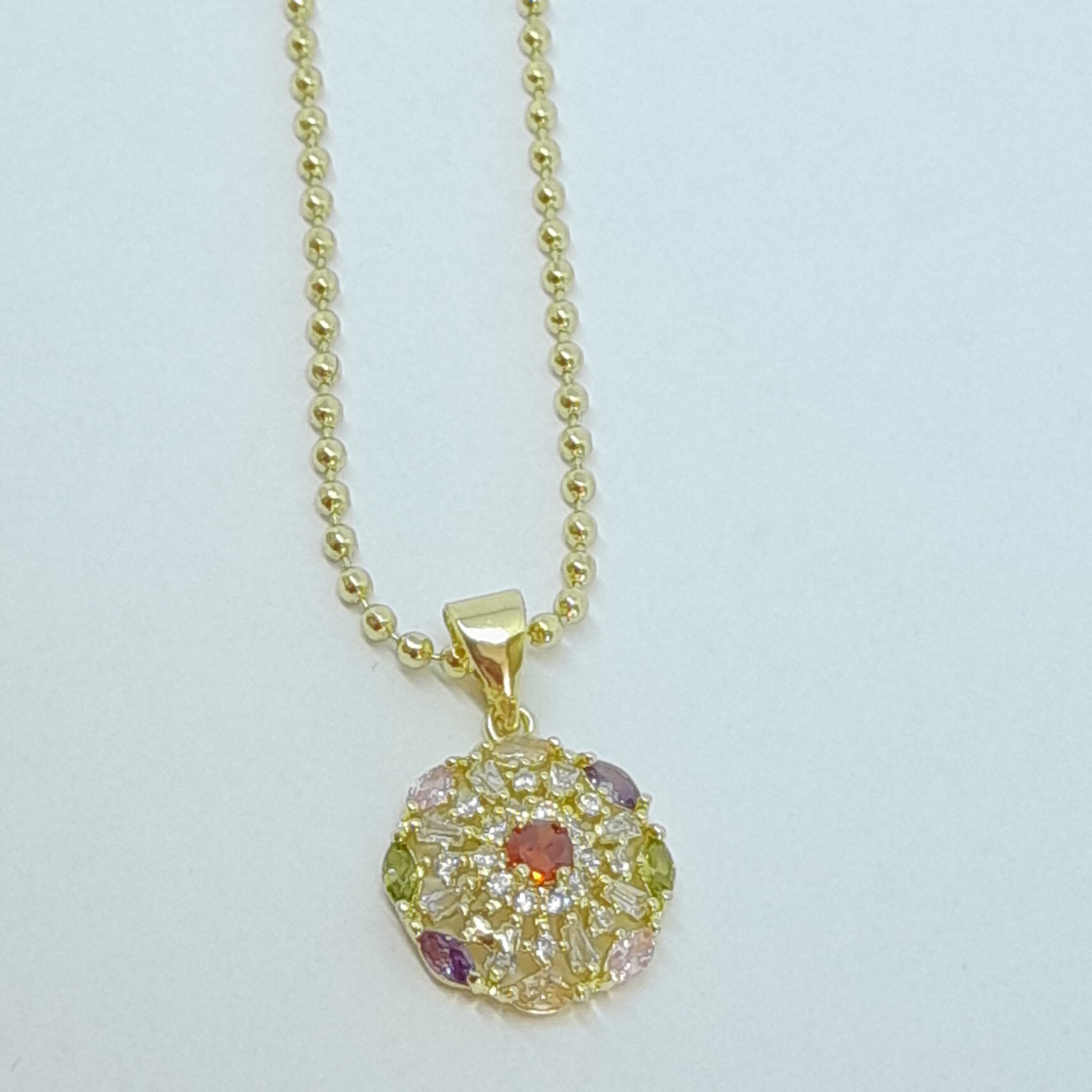 ✔ Lanț cu pandantiv CZ peridot, ametist și granat – 45 cm